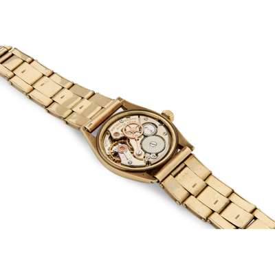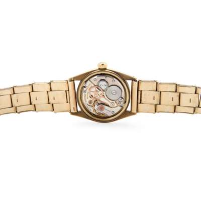Rolex. A very fine and unusual 9k gold mechanical wristwatch on expanding bracelet