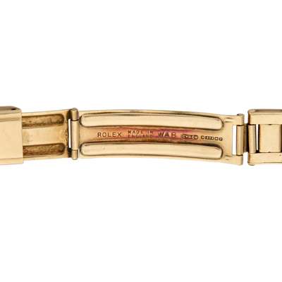 The bracelet was made in England under license from Rolex by E.J.Clewley & Co and Watch Accessories Birmingham (WAB) who specialised in watch bracelets during the era. The underside of each central link is stamped .375 for 9k gold.