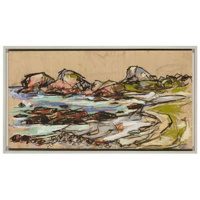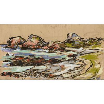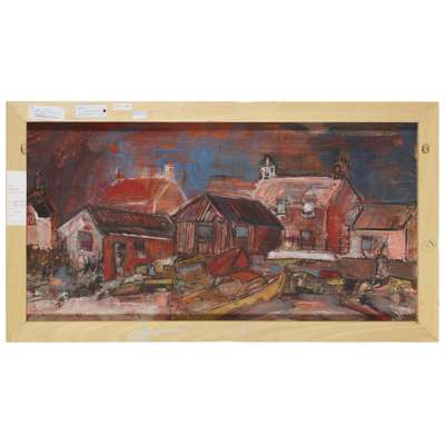 signed lower right, pastel on wood, with sketch of fishing village verso