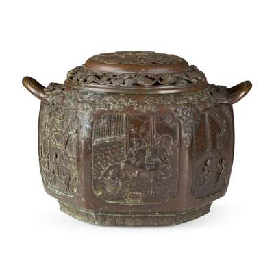 江戶 銅鑄人物紋八方香爐