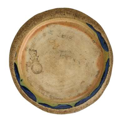 each impressed manufacturer's mark, the smaller with incised initials for Emily Welch, glazed stoneware (2)