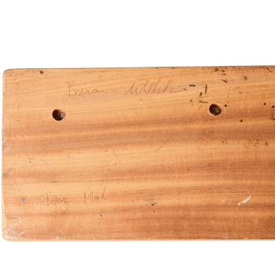 signed and inscribed with title by hand on the underside of the base, carved wood