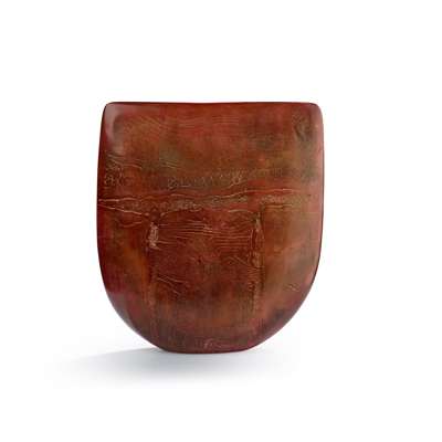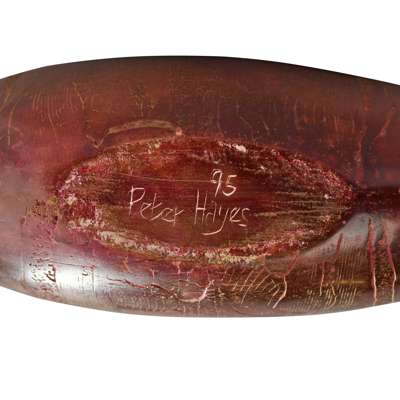Peter Hayes’ principle aim is for his work not to compete with nature, but to develop and evolve in the environment, and this is shown through the way he layers up textured clay surfaces by polishing and burnishing, alongside the introduction of further minerals, such as copper and iron, into the raku surface of his objects.