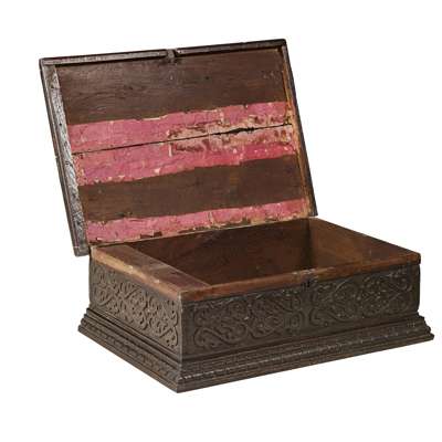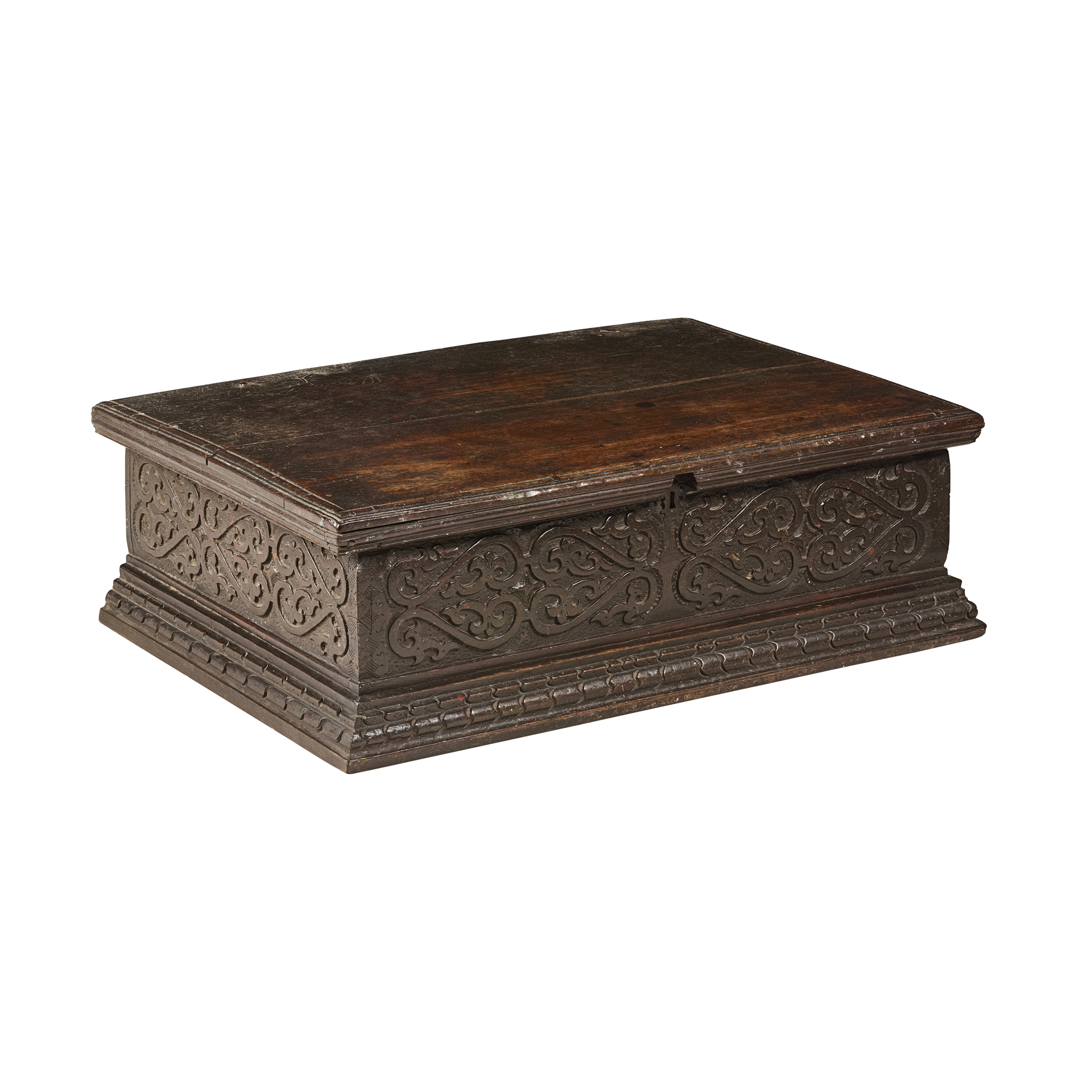 LARGE BOARDED DEED BOX, GLOUCESTERSHIRE, EARLY TO MID 17TH CENTURY
