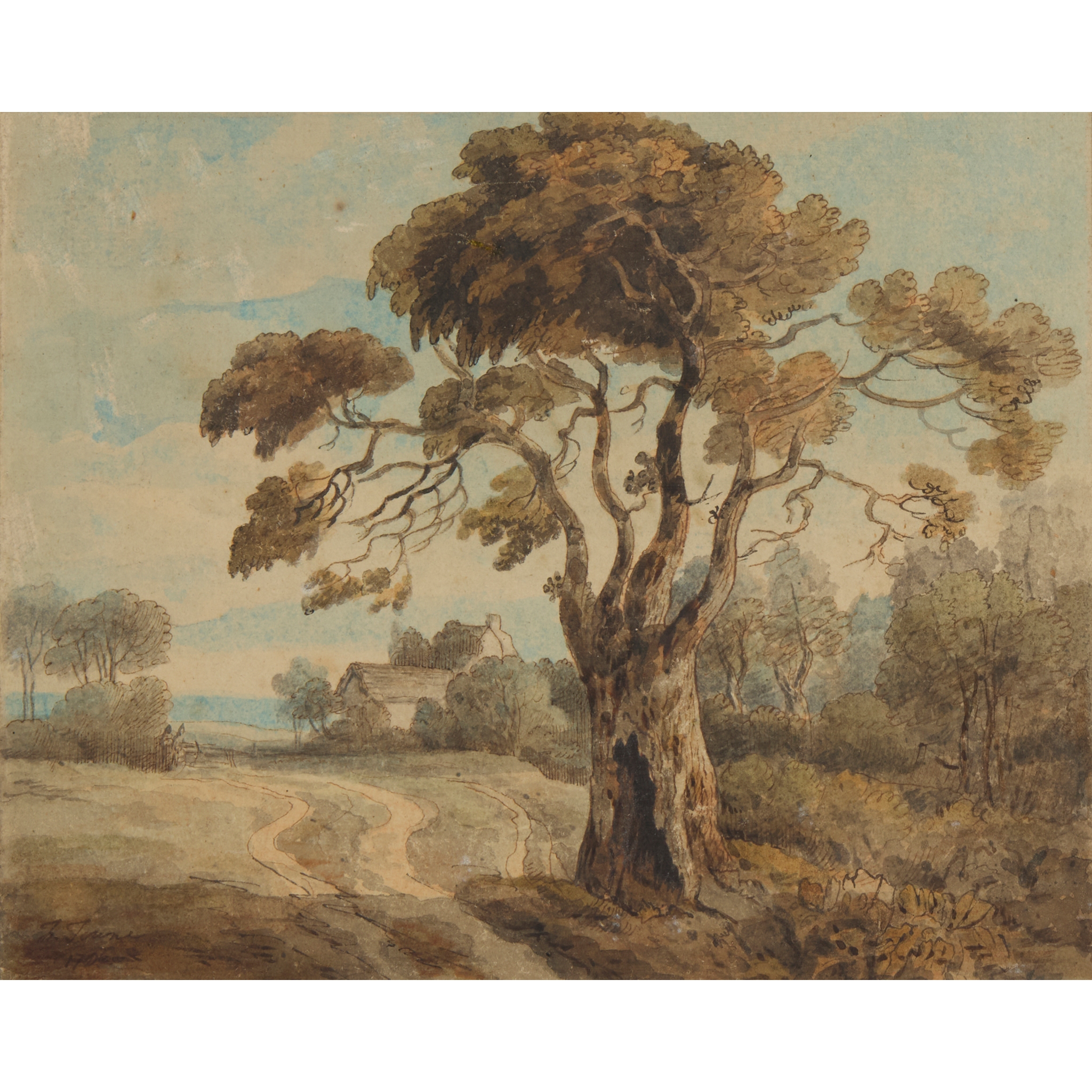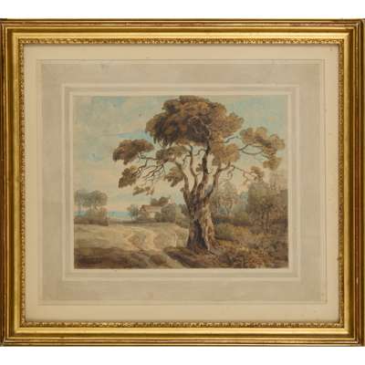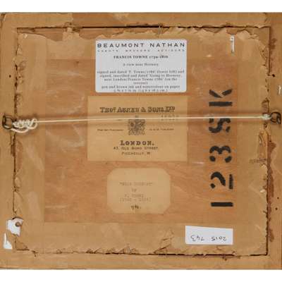 According to a label on the reverse, this work is signed, inscribed and dated ‘Going to Hornsey near London / Francis Towne 1786’.