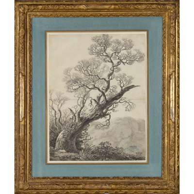 signed and inscribed ‘Klinsky del: nach der Natur bey Lingij im Novbre 1785’ lower right, ink and wash on two conjoined sheets of paper
