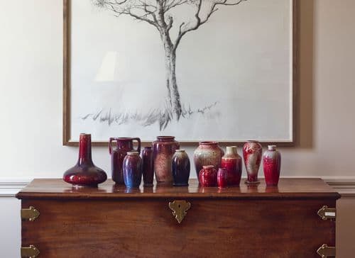 What distinguishes Ruskin Pottery even today is the glazes – crystalline, lustre and sang de boeuf (or high-fired flambé). The latter was created using copper and iron oxides.