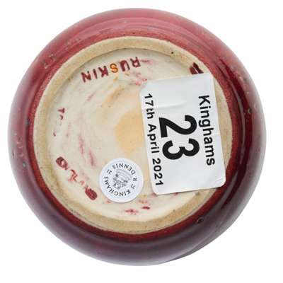 impressed RUSKIN ENGLAND 1933, ox-blood glaze, with green speckling, stoneware