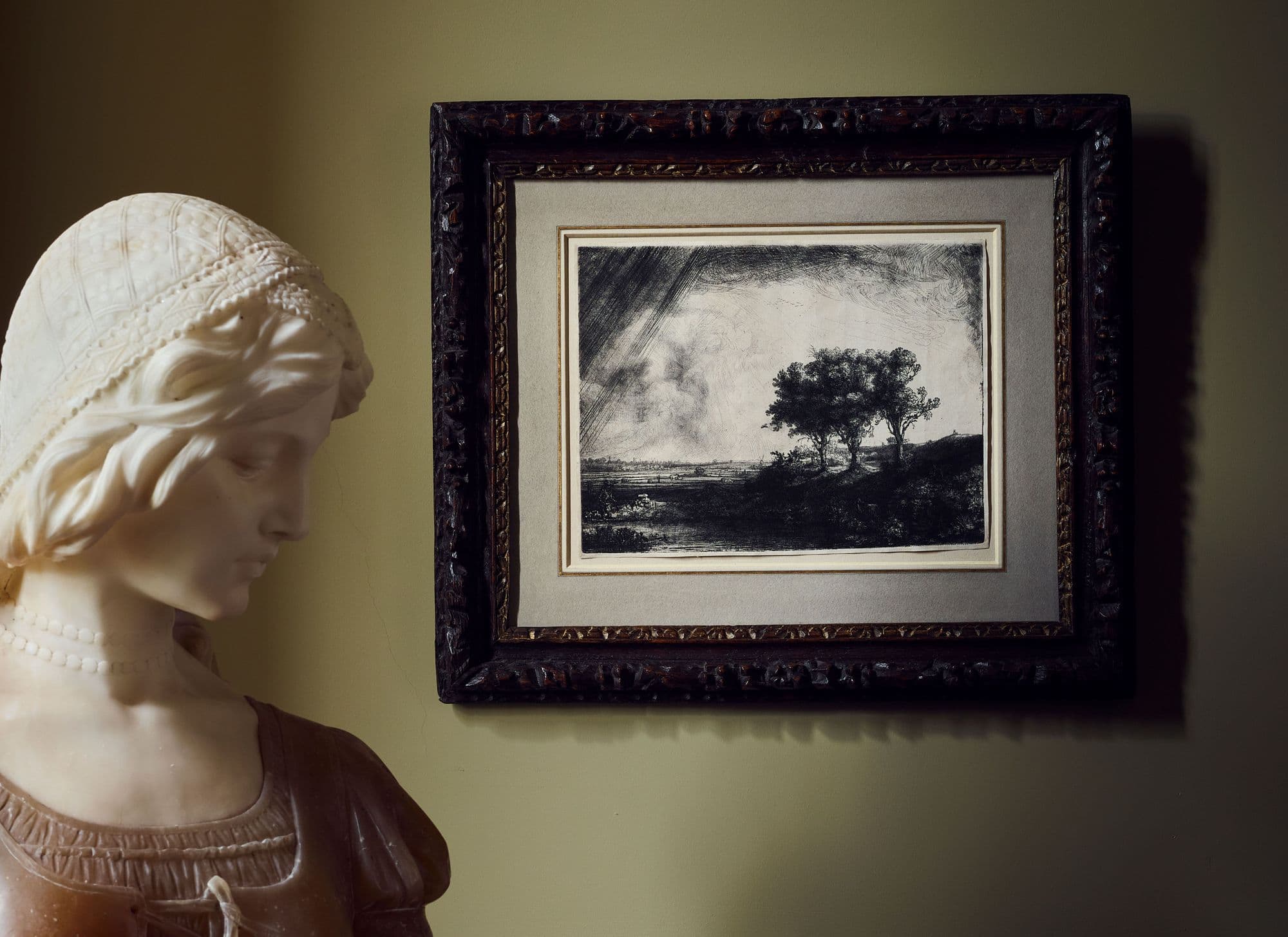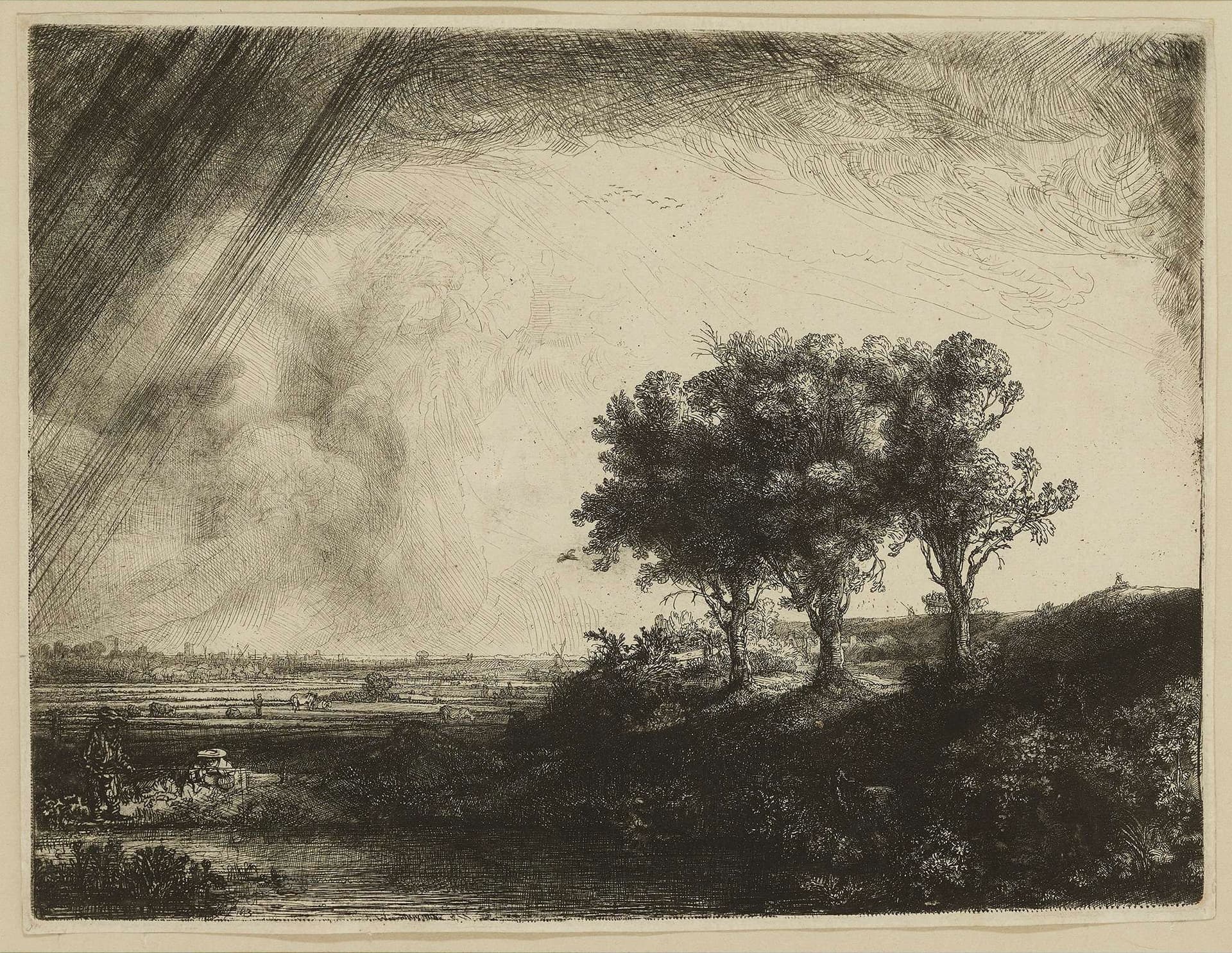 The Three Trees is Rembrandt’s largest and most elaborate landscape etching and is considered a masterpiece within his oeuvre.