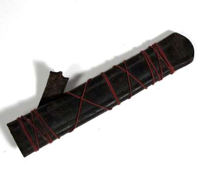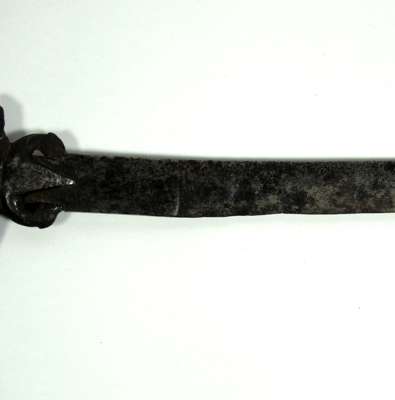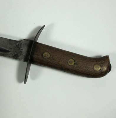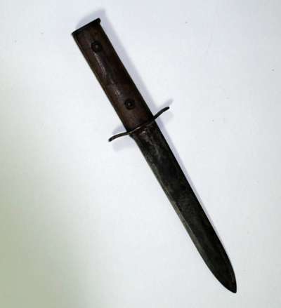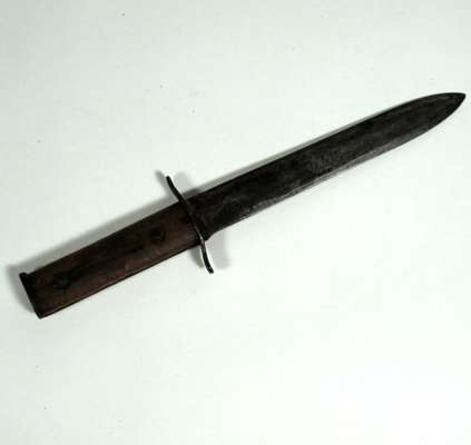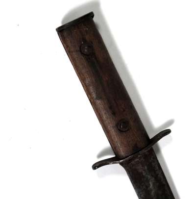 25in. (63cm); and a wooden hafted dagger, in string bound scabbard, the wooden slab sided grip secured by three rivets, 11in. (27cm) long (5)