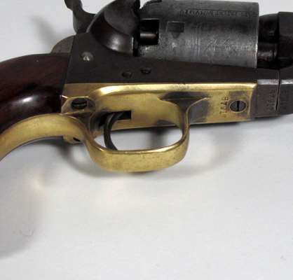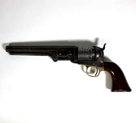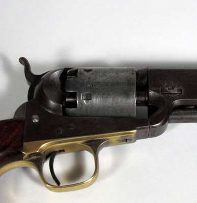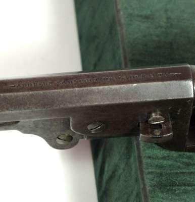 in original leather holster, brass frame and trigger guard, the cylinder engraved with naval scenes, the barrel engraved `Address Saml Colt New York City’, chamber engraved ‘Colts Patent’, all four number 87917 match (2)