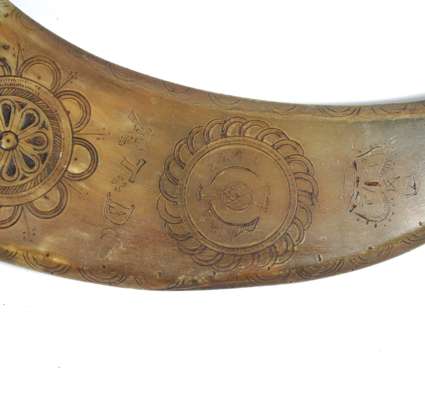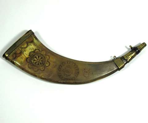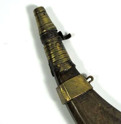 SCOTTISH FLATTENED COWHORN POWDER FLASK