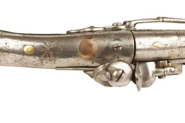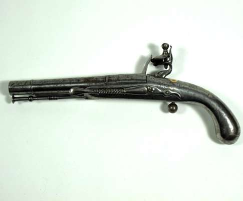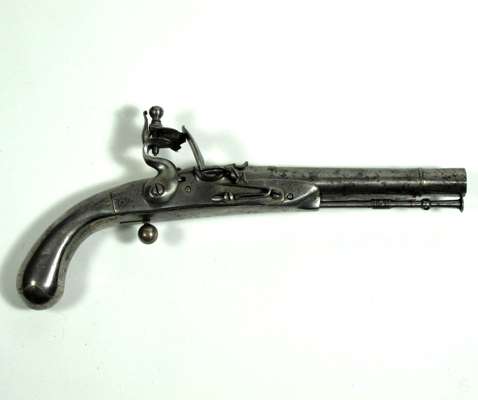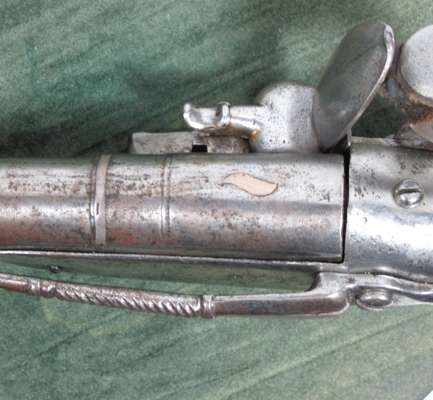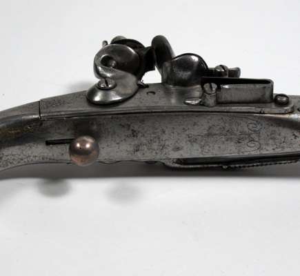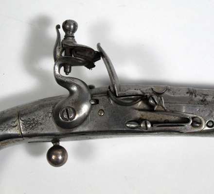 SCOTTISH FLINTLOCK STEEL AND SILVER LOBE BUTT PISTOL