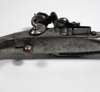 the three quarter stock and lock of traditional form with four stage barrel, silver leaf at the breech, with a raised silver inlaid line with flared octagonal muzzle, silver ball trigger, the stock with a blank silver escutcheon above an inlaid silver ribbon with a small gold blank oval, with the plain lobe shaped butt decorated with an inlaid silver wavy line around the circumference and a silver cap at the butt, with original belt hook steel ramrod turned and pierced