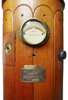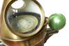the cylindrical oak frame surmounted by the copper compass top with glass windows and two copper handles, with two iron brackets bolted to the cylinder with two cast balls on either side above a measuring scale, a spirit level contained in a brass case screwed to the front, a cast brass plaque compass No 2944N, the base with four slots for attaching to the deck