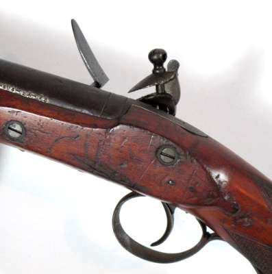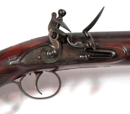 the lock plate engraved with the east India company rampant lion, ringed cock, patent cock screw, regulation barrel, London Gunmakers view and proof marks, full well figured walnut stock with chequered grip scrolled trigger guard
