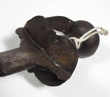 of characteristic form with elongated pommel and plain shaft, the head with ten shaped iron flanges