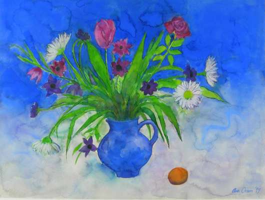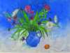 STILL LIFE WITH BLUE VASE AND SUMMER FLOWERS