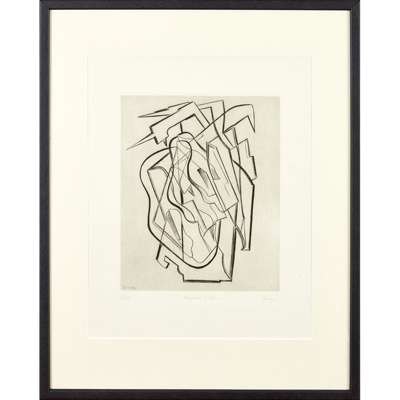 Note: Born in Cardiff but raised in Glasgow, Evans studied at Glasgow School of Art and in 1930, exhibited at the Royal Scottish Academy. In 1931, he was awarded the Haldane Travelling Scholarship and visited Berlin, Copenhagen and Paris. Later that year he won a free place at the Royal College of Art in London. In 1934 Evans became art master at Wilson's Grammar School in Camberwell. From here, he made frequent trips to Paris where he met Mondrian, Kandinsky, Giacometti, Max Ernst and William Hayter. He also exhibited with the London Group and at the International Surrealist Exhibition during this period. Evans moved to South Africa to take up a teaching post in 1938 and enlisted in the Signals Corps in the South African Army in 1942. In 1946 he moved back to London where his artistic career developed. In 1949 he had his first one-man exhibition at the Leicester Galleries, where he exhibited in 1952, 1953 and 1955. In 1956 the Whitechapel Gallery held a retrospective of his work. He continued to exhibit regularly during the 1960s and in 1963 took a studio in St Ives for the summer, where he went annually thereafter. Evans took a post as the exchange artist in residence at the Art Institute of Chicago in 1967 which allowed him to visit New York. Here he met Mark Rothko, Barnett Newman and Robert Motherwell. On his return to London, Marlborough Fine Art held a one-man exhibition for him entitled 'Events and Abstractions'. The Welsh Arts Council commissioned a triptych of his aquatints the following year and in 1972 the Victoria and Albert Museum held an exhibition of his graphic work.