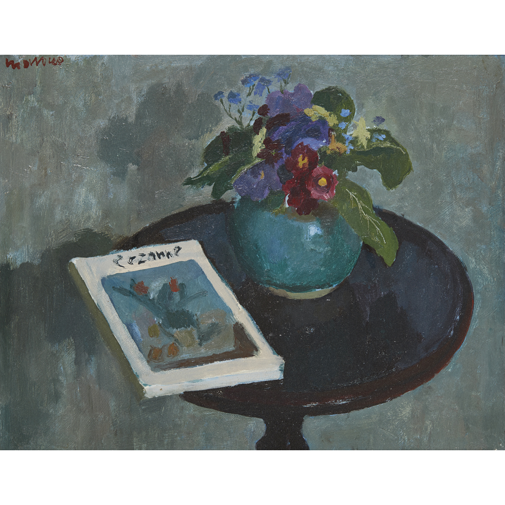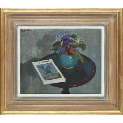 TABLE WITH FLOWERS AND CEZANNE BOOK, C.1959