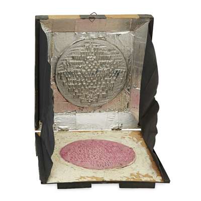 Signed, inscribed with title and dated 1967, wooden box construction with mixed media interior