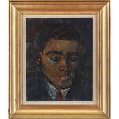 Signed and inscribed with title and dated 1946/47 verso, oil on board, studio stamped verso
