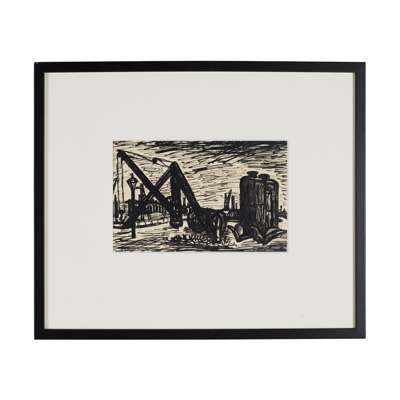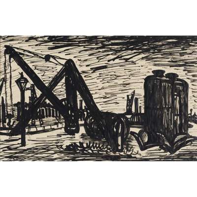 8.5cm x 8cm (3in x 3.25in) and two further works by the same hand, 'Hearse', and 'Derrick, Port Dundas' (3)