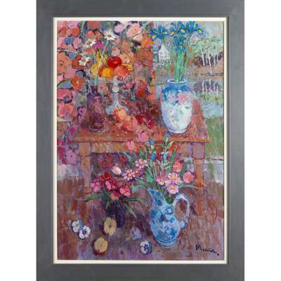 IRISES WITH A LATE SUMMER LANDSCAPE