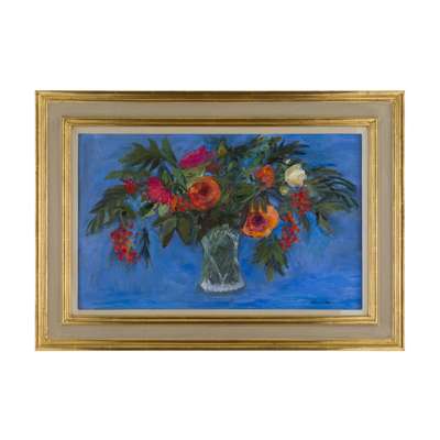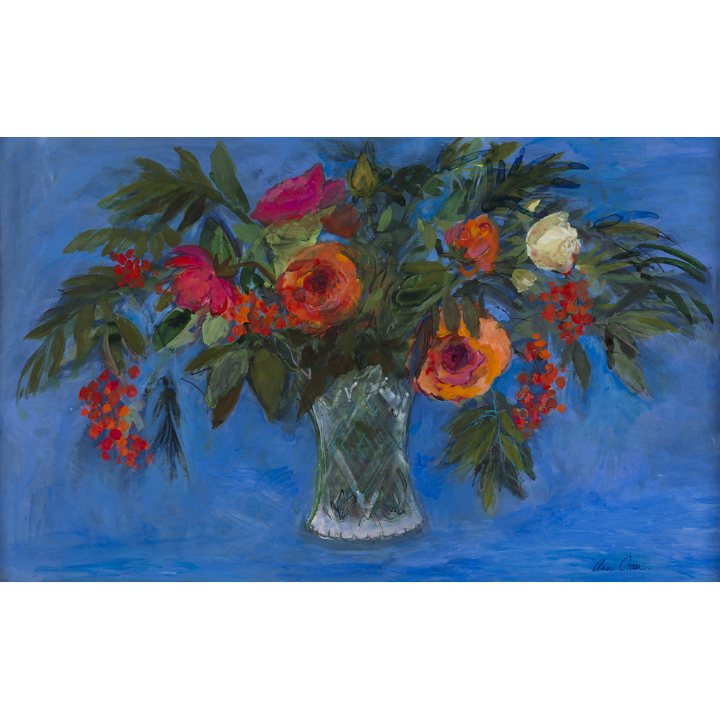 ROSES AND ROWAN BERRIES ON A BLUE GROUND