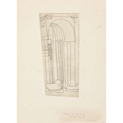 signed, inscribed Sadie & Leslie and dated March 66 in pencil (lower right), also inscribed Artist’s proof (Verona) (to reverse), etching on paper, blind-stamped (lower left), an artist's proof aside from the edition of 50: accompanied by a framed photograph of another work by Nicholson, annotated by the Artist (to reverse)