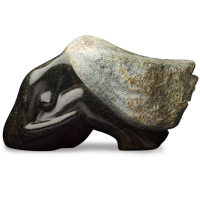 signed, titled and dated, Cornish soapstone