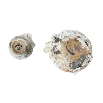 the bottle: 14cm high (5 ½in high); the cup: 4.9cm high (1 7/8in high)