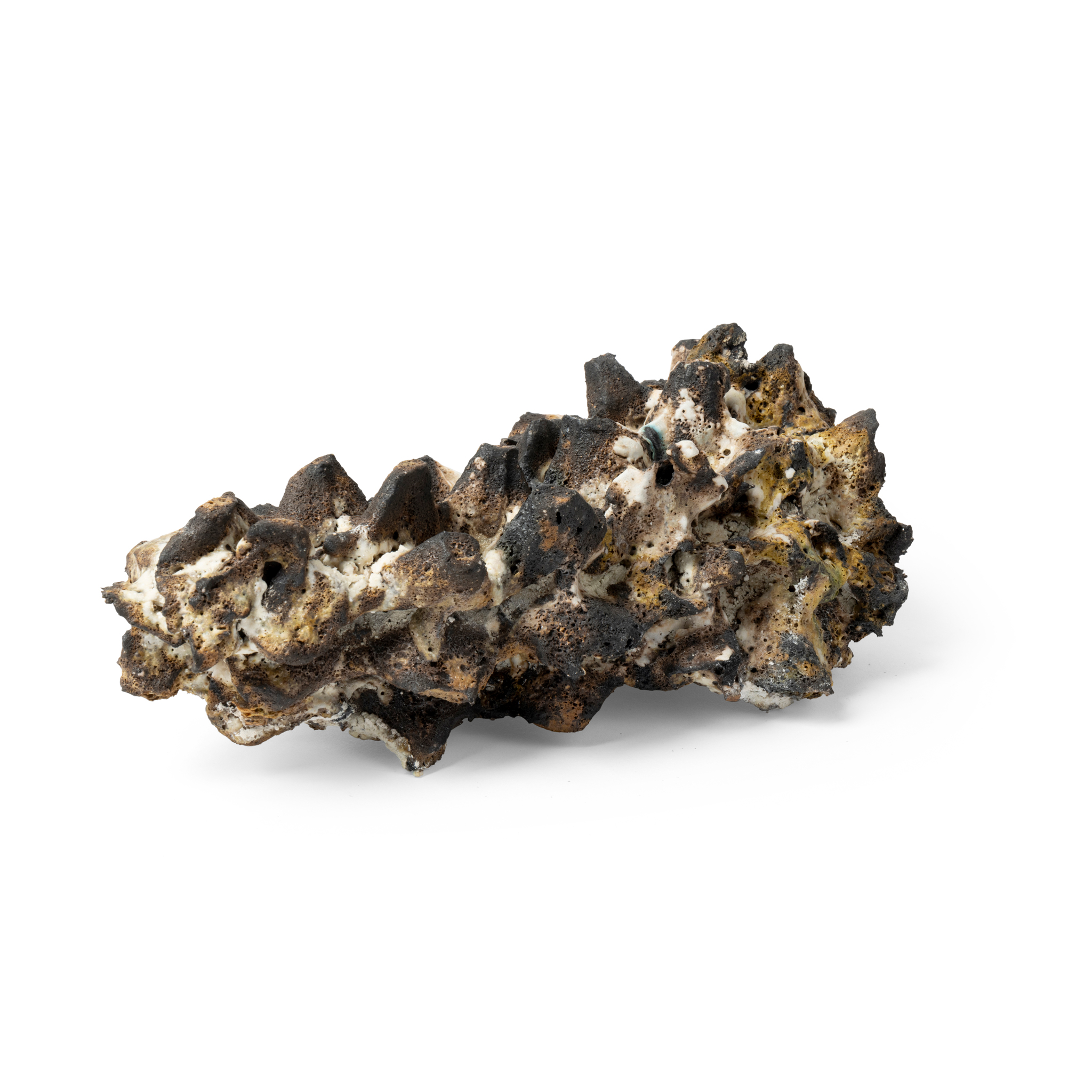 Born in Staffordshire in 1934, Ewen Henderson’s first foray into the arts was as a part-time student when he enrolled in evening classes during his National Service. From 1964, he became a full-time student at Goldsmiths College and then studied ceramics at Camberwell School of Art, where he was taught by Lucie Rie, Hans Coper, and Ian Godfrey. The technical mastery that Henderson developed and inherited from his teachers is immediately apparent when handling one of his ceramics. However, unlike Lucie Rie’s celebrated smooth and symmetrical forms, Henderson found success in his naturalistic and splintered pieces. Henderson soon abandoned his traditional potter’s wheel and opted to work by hand, feeling a greater dynamism that romantically connected him with the naturalistic asymmetry that was inherent to his materials.