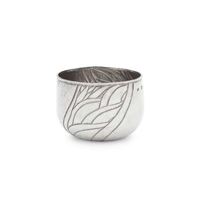 stamped maker's mark and hallmarked for London 1980, the outside of the bowl embossed and chased with a foliate design, Britannia silver