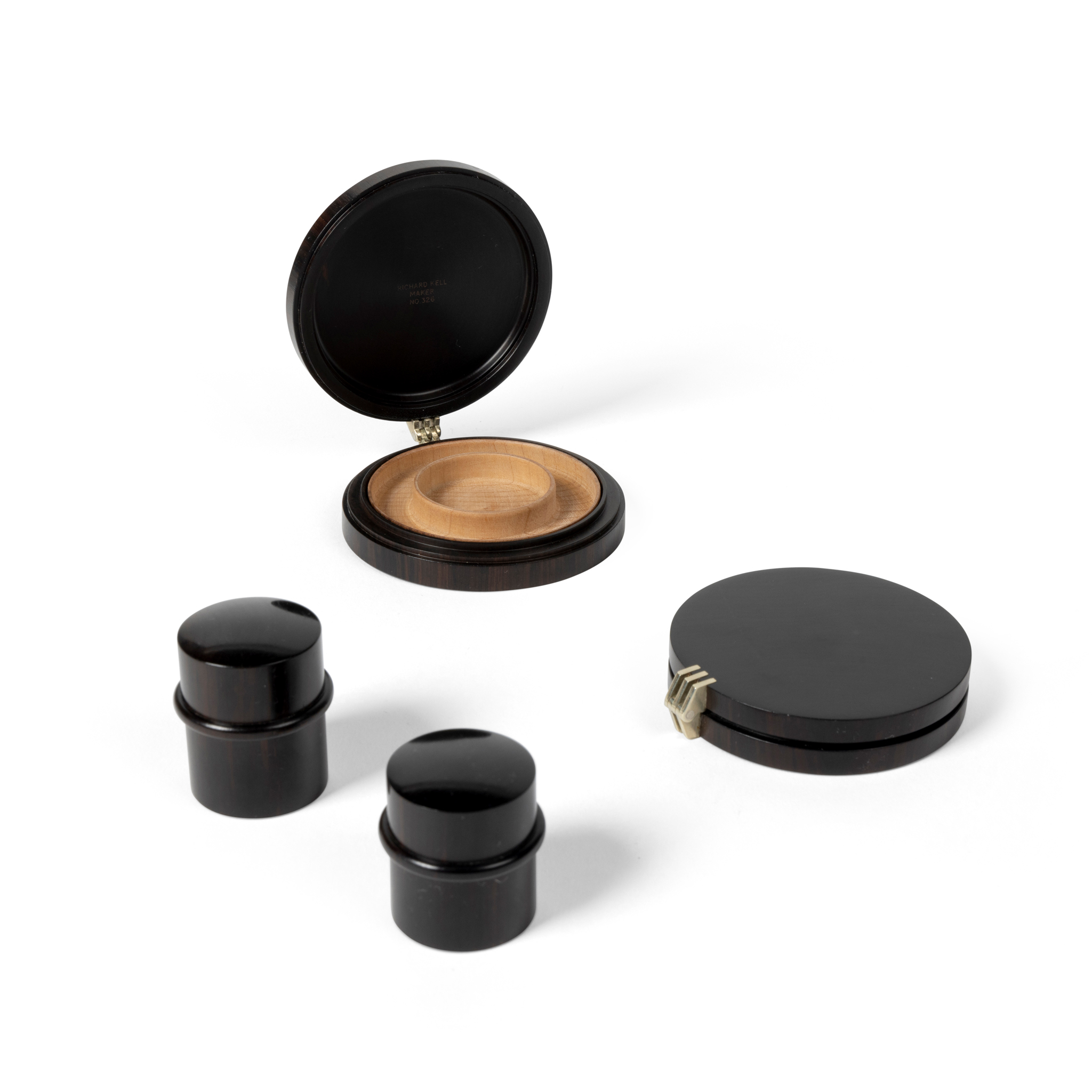 We are delighted to be offering this rare collection of early works by Kell that demonstrate his passion for craftmanship, and his capacity to carve out highly-detailed forms on the most miniature scale retaining an elegance and confidence in their presentation. He began his career creating these containers for institutions such as Prescote Gallery, the Victoria & Albert Museum Craft Shop, and Contemporary Applied Arts in the early 1980s, and this private single-owner collection (lots 365 to 375) attests to his capacity to connect with his audience through the intimacy that is expressed in the materiality of his work. Jewellery boxes are intrinsically personal objects and Kell’s mastery over his technique allows him to create elegant and engaging works that draw on this connection between an object and its user. The way in which Kell consciously chooses different types of wood for the outer box and the inner layers further add to this modest elegance and prove an exciting discovery for the user.