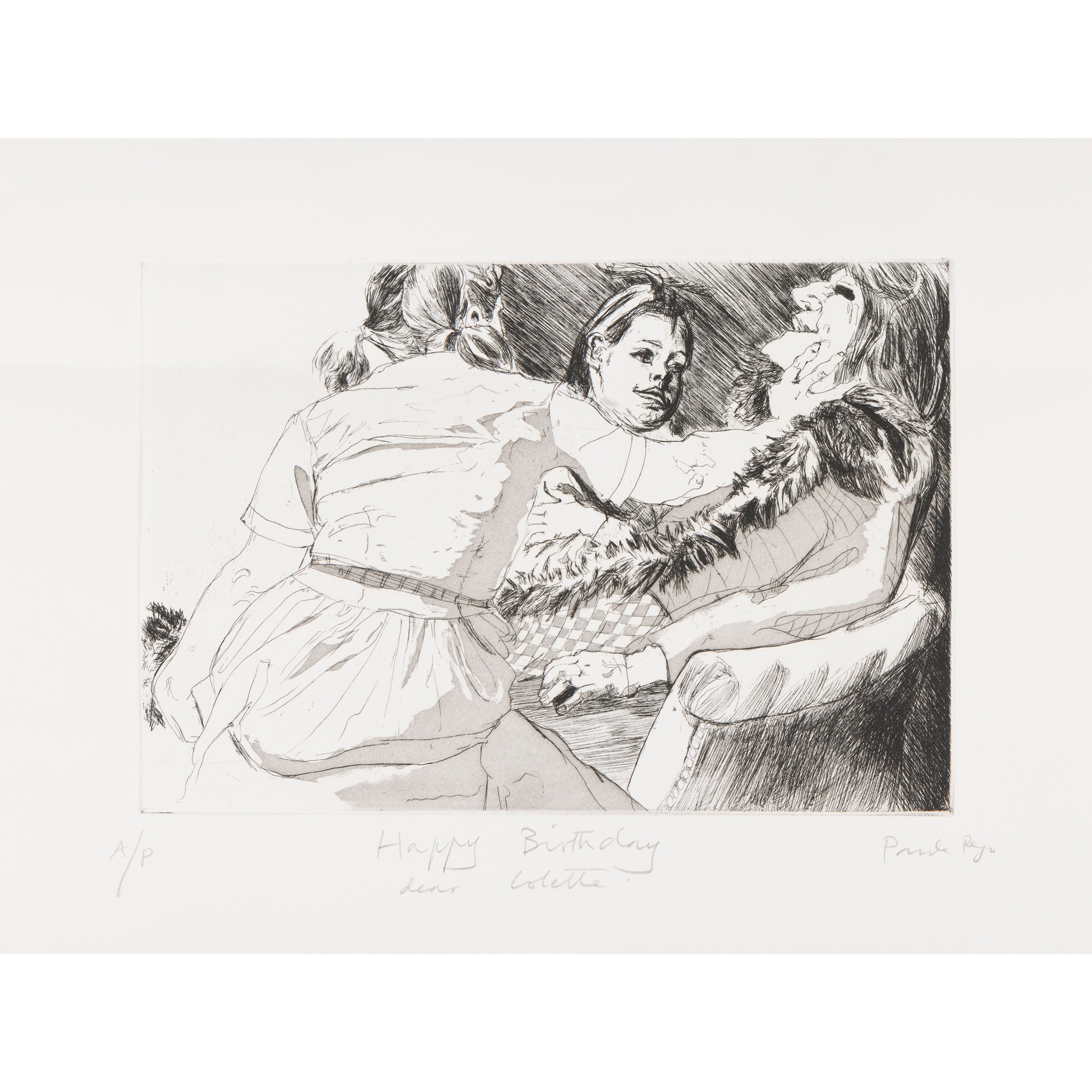 signed in pencil (lower right), inscribed A/P (lower left) and dedicated Happy Birthday Dear Colette (lower centre), etching and aquatint, artist's proof aside from the edition of 17, unframed