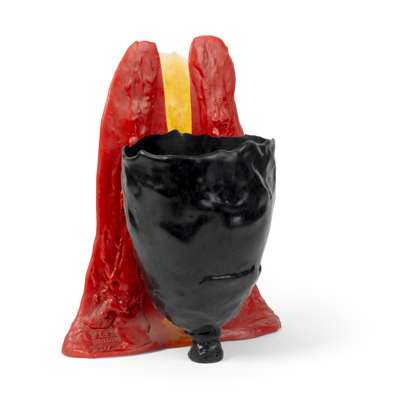 Known for his innovative vision and radical designs, Gaetano Pesce has had a significant influence on the history of contemporary design. As an architect, artist and designer, Pesce’s work challenges the boundaries between these disciplines, as he developed his own bold aesthetic in the use of vibrant colours, experimental materials and inventive organic forms. He particularly asserted the connections between the individual and society in his designs, as a response to the time we live in: ‘Designers have to understand they are practising something that is maybe better than art. Because art goes to the gallery, goes to the museum. But design goes to families. Objects stay inside the family and people are in contact with them every minute of the day. That is very, very powerful.’ (Gaetano Pesce, 1 January 2023, see Glenn Adamson, Gaetano Pesce: The Complete Incoherence, Monacelli Press, New York, 2023, p.294)