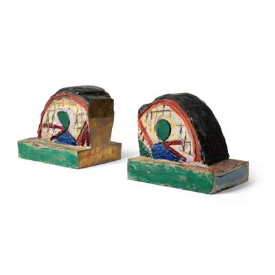 each sculpture 15.5cm high, 17.5cm wide, 14.5cm deep (6 1/8in high, 6 7/8in wide, 5 ¾in deep) (2)
