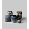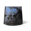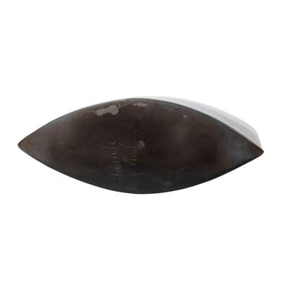 signed (to base), earthenware, burnished and smoke fired, blue, black and dark grey mottled body, pierced holes to front