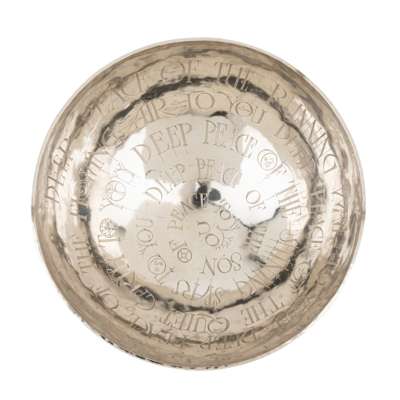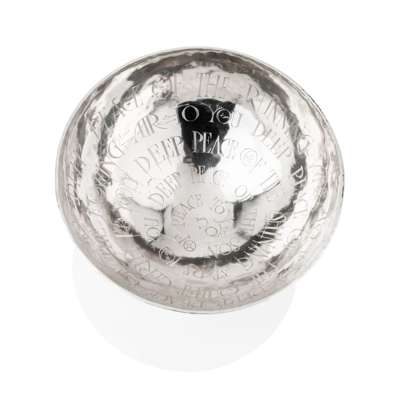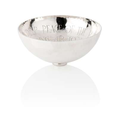 stamped maker's mark and hallmarked for Edinburgh 1993, silver, engraved Deep Peace of the Running Wave to You / Deep Peace of the Flowing Air to You / Deep Peace of the Quiet Earth to You / Deep Peace of the Shining Stars to You / Deep Peace of the Sun of Peace to You (inside bowl)