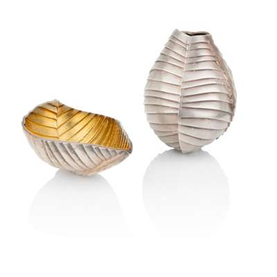Kevin Grey is an award winning silversmith, who is challenging the notions of silversmithing and exploring it as a medium of decorative sculptural art. He creates unique works, employing TIG welding and laser techniques, to produce sculptural art works with a high level of precision and scale, tackling what might be made with silver, in comparison to past achievements with the material. He noted that ‘The starting point for each piece is an emotional response: a desire to express a moment or set of ideas in physical form. These can be as varied as a scientific concept, or lived experience of historical events.’