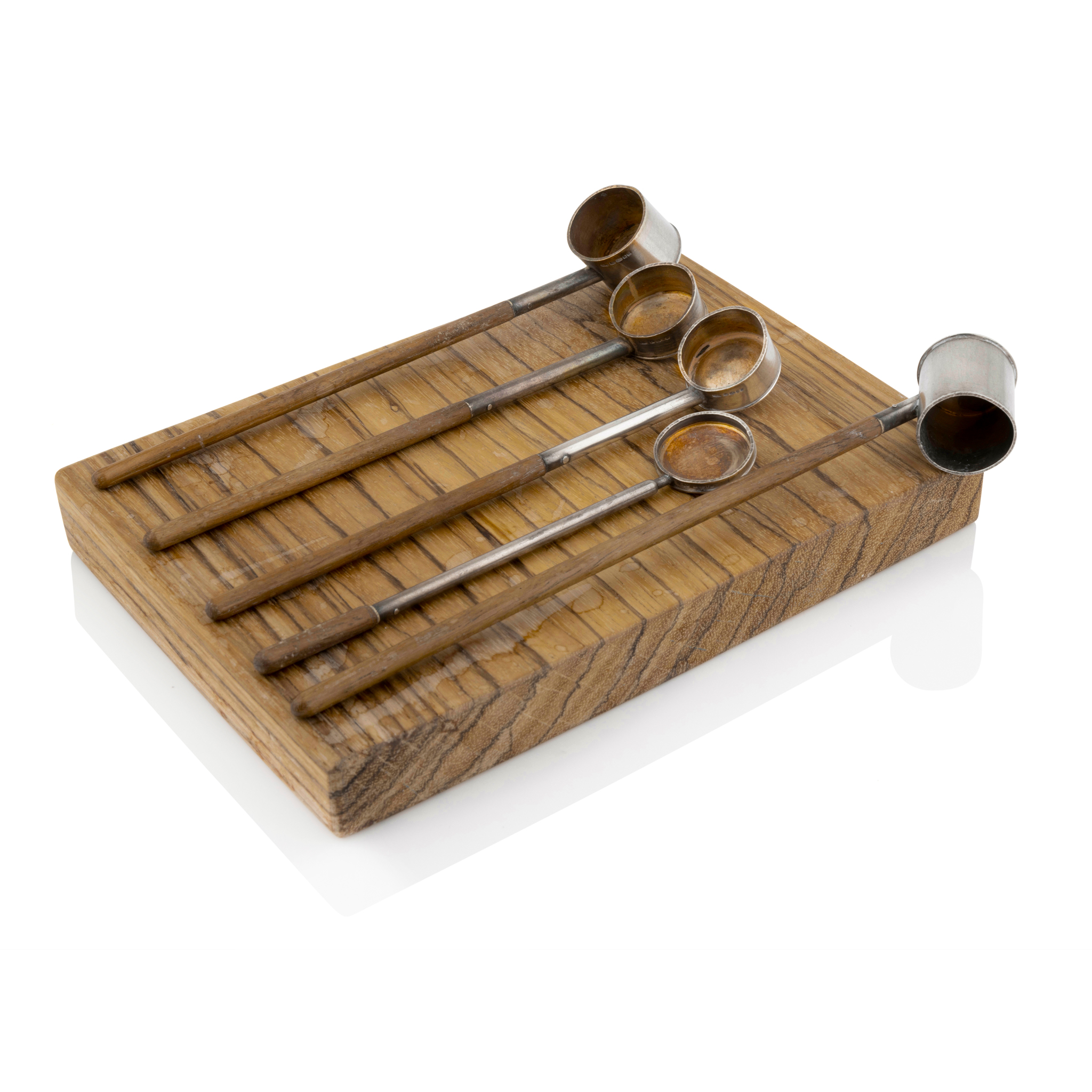 In 2004 Chien-Wei developed the Ladle Series, combining drum-like brushed silver bowls with delicate rosewood stems, the ladles were influenced by the forms of utensils used in ancient Eastern cultures. Each ladle is subtly different from the next, the angle of the handle, depth or shallowness of the bowl, giving every piece a distinct character.