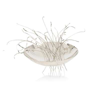 Created using the techniques of raising, sinking and forging, this piece metaphorically grows from the table. Creating a fine movement and reflective illusion, the pieces are never static, constantly evolving.