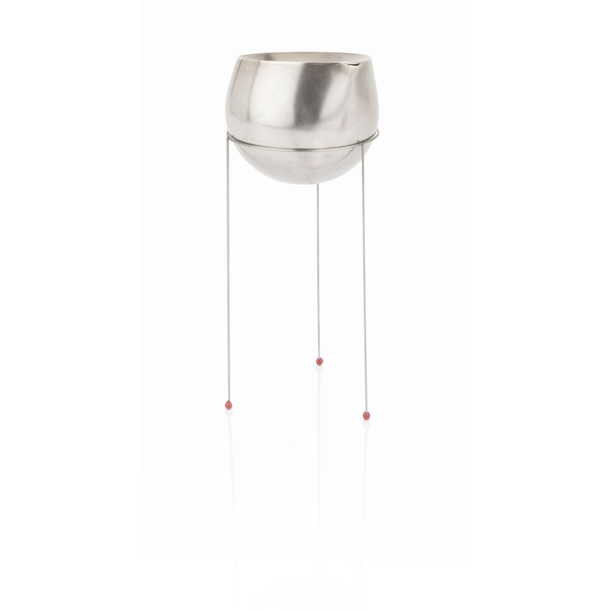 The maker wrote: ‘Can inanimate objects become sentient? Vessels on Stilts are inspired by museum displays of historic amphorae on tripod stands. They respond to vibrations and sound and offer an unexpected dialogue, provoking contemplation about the relationship between people and objects. The vessels pick up cues from the viewer, tremble and quiver in response to human movement or voice.’