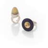 one ring in white metal, yellow metal, enamel and bakelite, ring size: L ½; the other ring in white metal and bakelite, ring size: M ½ (2)