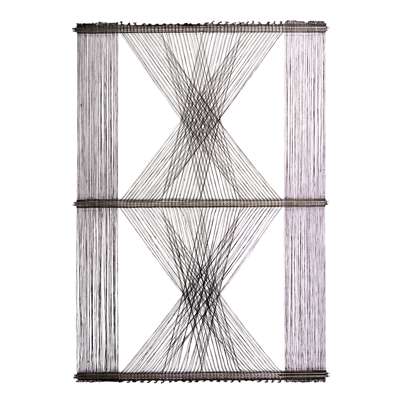metal label embossed M. 48 NO. 15 and incised P. Collingwood, linen and steel rods
