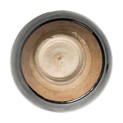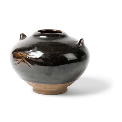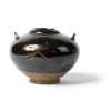 impressed maker's and pottery seals, stoneware with tenmoku glazes, with incised design to each side, and lug handles to the shoulder