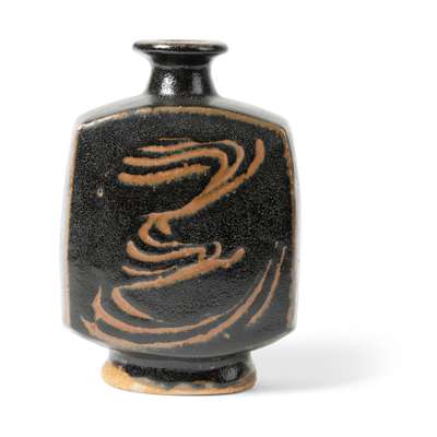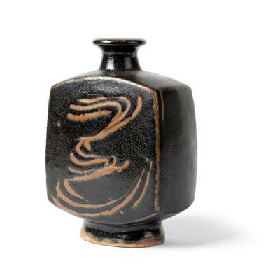 impressed maker's and pottery seals, stoneware with tenmoku and finger wipe motif front and back