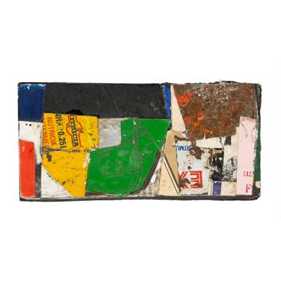 titled in pen (to reverse), stamped Estate stamp (to reverse), collage on board