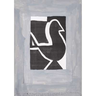 ‘BIRD’, mixed media with collage working printer's proof, with printer's recommendations to the artist in ink (to lower edge), and further colour notations, the sheet 58cm x 42cm (22 ¾in x 16 ½in), unframed;